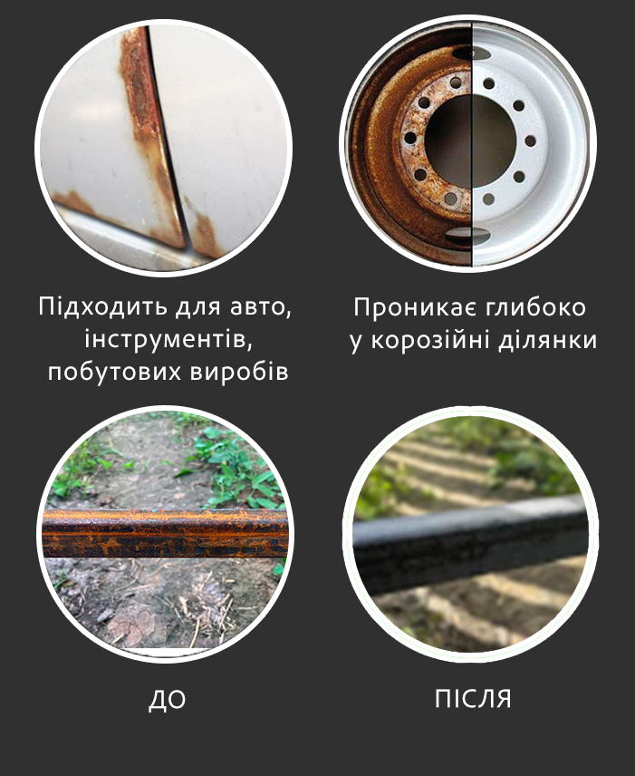 Формула спрею проникає в мікротріщини, руйнуючи осередки корозії зсередини